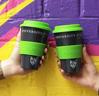 “YORCUP” - a reusable cup “loan” scheme to reduce disposable cup usage across campus cafes. Teamed with the “Latte Levy” (a surcharge on disposable cup use) to raise money for sustainability projects, in under a year disposable cup usage dropped by ~24% (~90,000 disposables) and reusables increased 82%. The Levy has raised over £34,000 for on-campus and community sustainability projects. (https://www.sustainabilityexchange.ac.uk/green_gown_awards_2020_university_of_york_final)